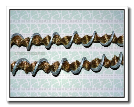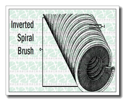 英文名Inverted brush,Spiral brush或者Screwed brush,由剛性部件(毛刷底座)和柔性部件(刷絲部分)組成,呈內(nèi)螺旋或者外螺旋狀,刷絲常見(jiàn)為尼龍塑料絲、金屬絲如銅絲或鍍銅鋼絲等,底座常見(jiàn)為鍍鋅鐵(Galvanized steel),或有不銹鋼底座,但并不多見(jiàn)。